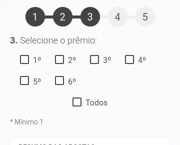 Você escolhe um número com 4 algarismos, de 0000 a 9999 no 1º, 2º, 3º, 4º, 5º e 6º prêmio, podendo selecionar todos, somente um ou um intervalo entre eles (potencial de retorno aumenta ou diminui de acordo com a quantidade selecionada).